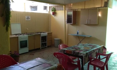 Четырёхместный номер эконом веранда из трёх номеров два номера трёхместных и один Четырёхместный у каждого номера рядом с номером личная душевая и кухня на три номера