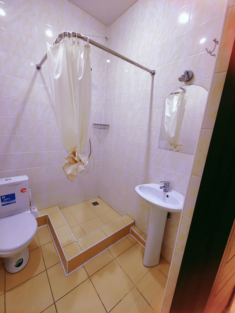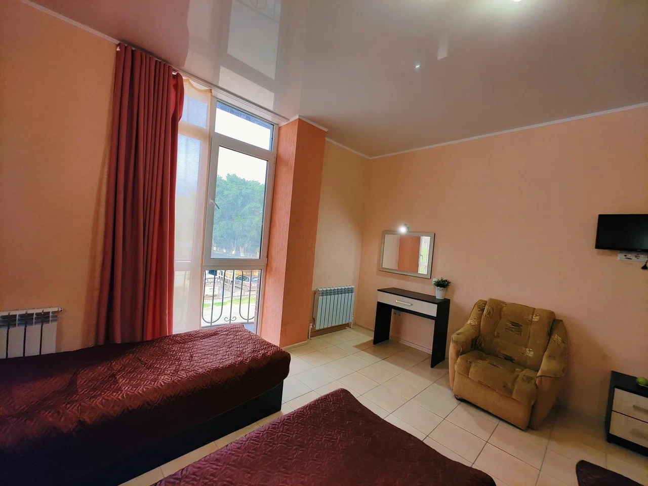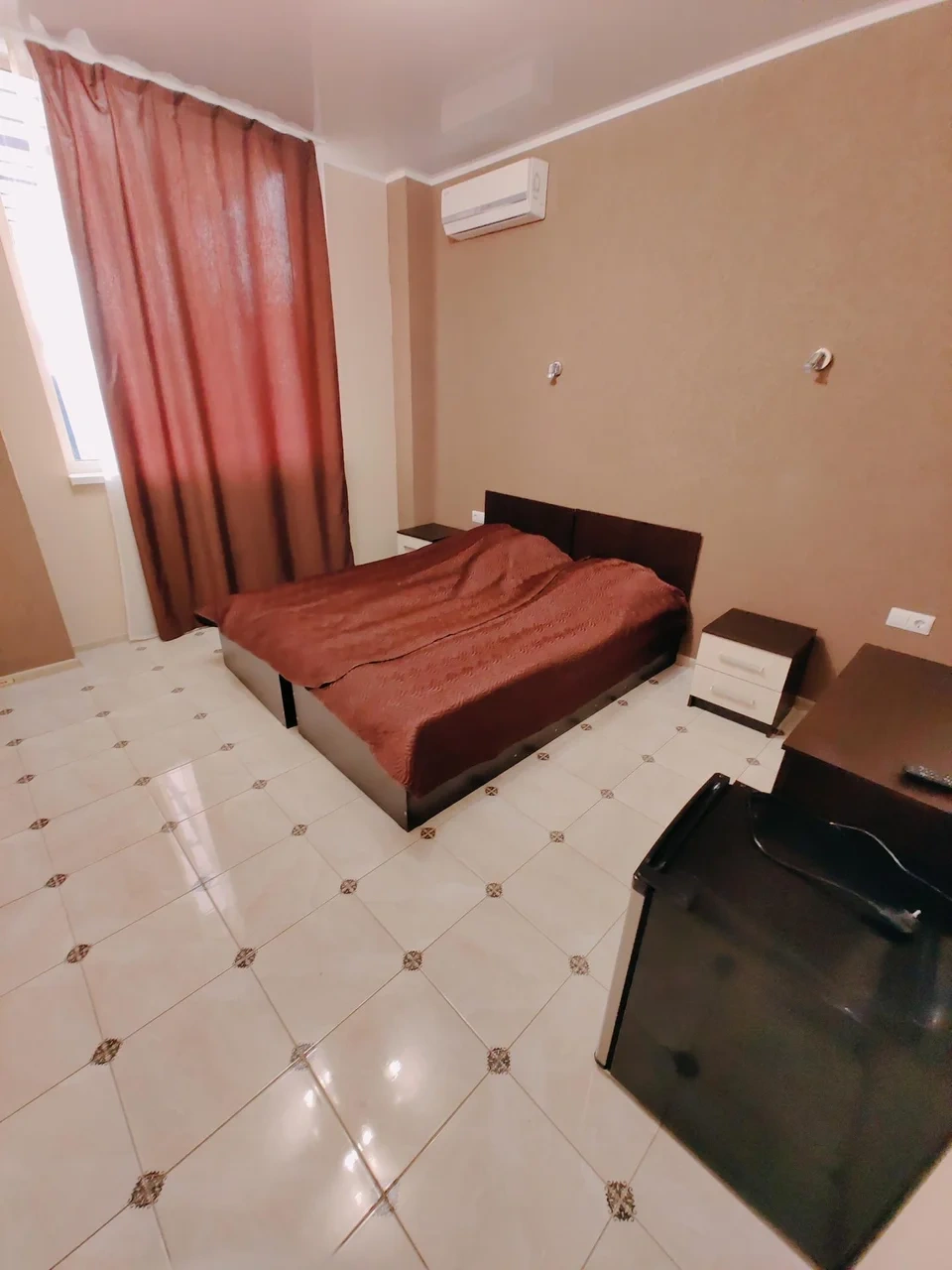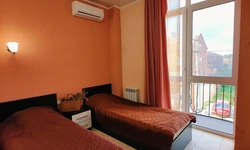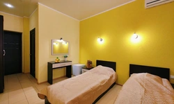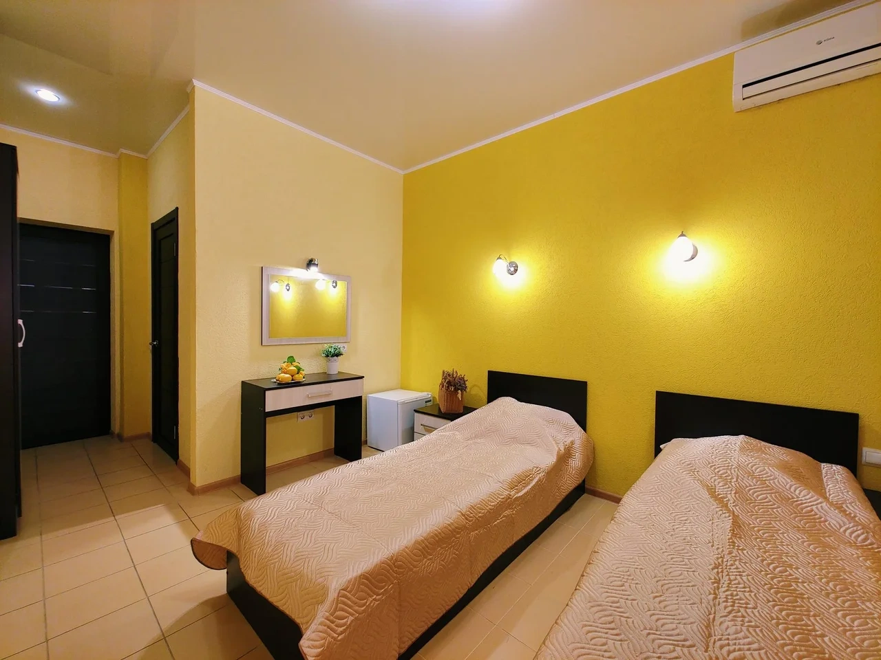 Уютный номер оснащен двумя односпальными кроватями, прикроватными тумбами, журнальным столиком, платяным шкафом, мини-холодильником, телевизором и кондиционером. Ванная комната (душ, туалет, раковина).