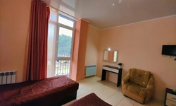 Уютный номер с балконом. Оснащен тремя односпальными кроватями, прикроватными тумбами, журнальным столиком, платяным шкафом, мини-холодильником, телевизором и кондиционером. Ванная комната (душ, туалет, раковина).