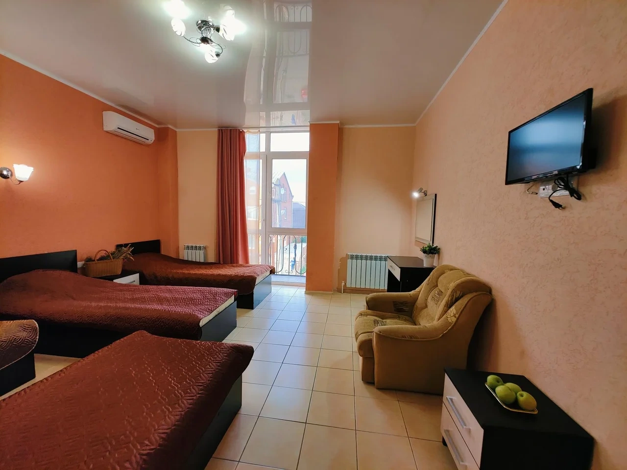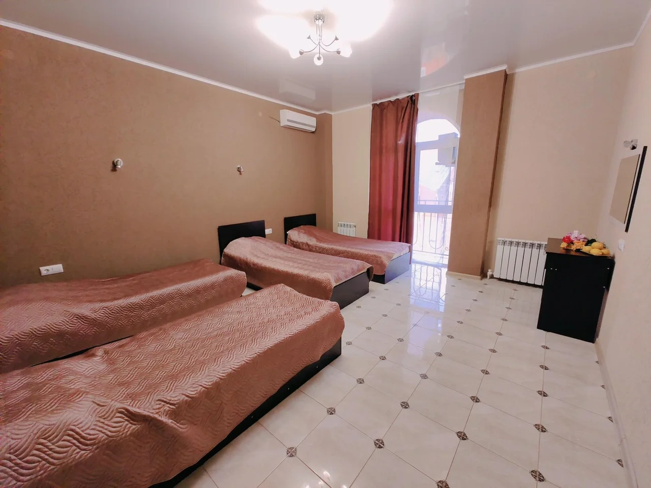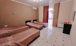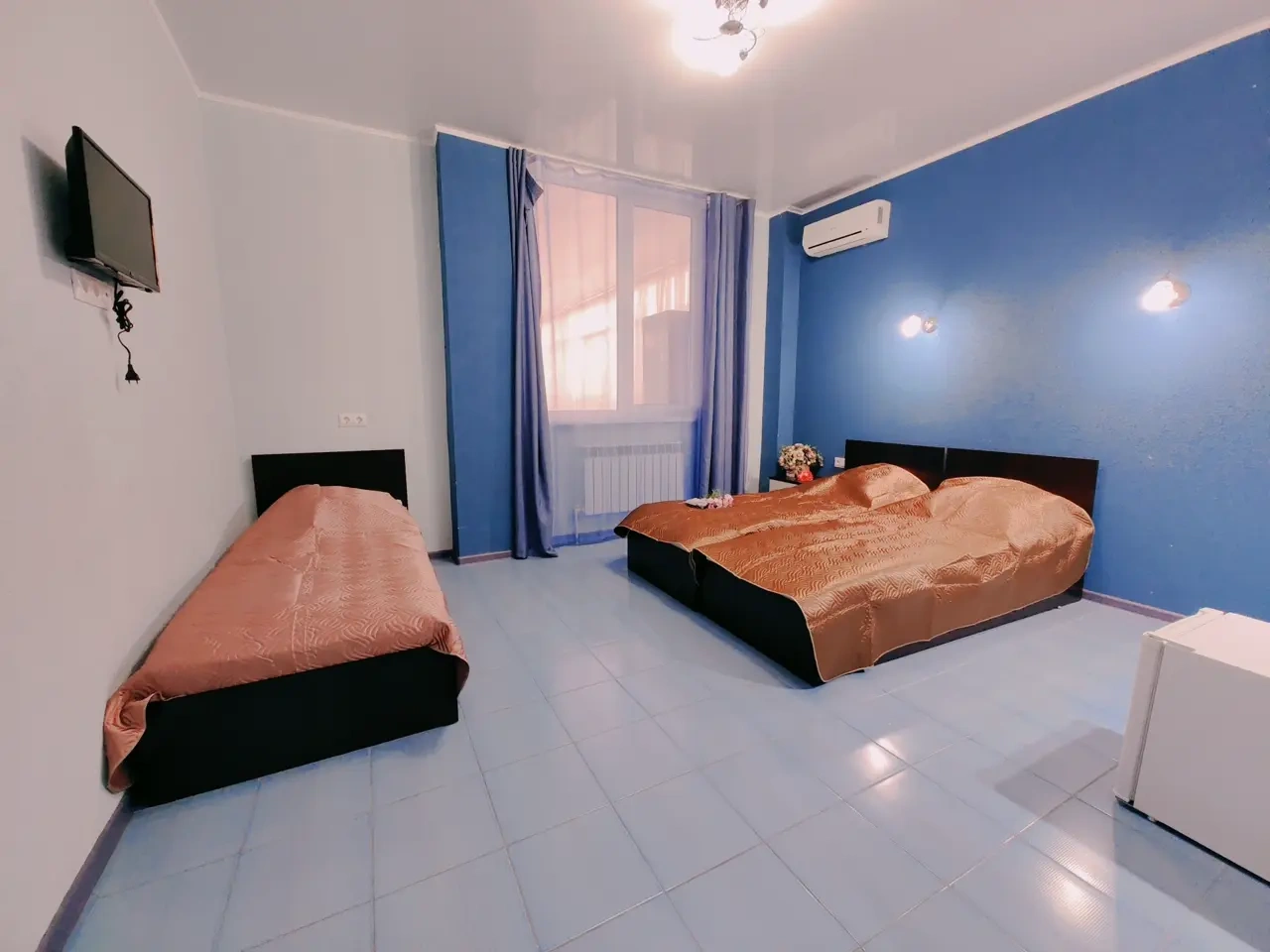 Уютный номер оснащен тремя односпальными кроватями, прикроватными тумбами, журнальным столиком, платяным шкафом, мини-холодильником, телевизором и кондиционером. Ванная комната (душ, туалет, раковина).