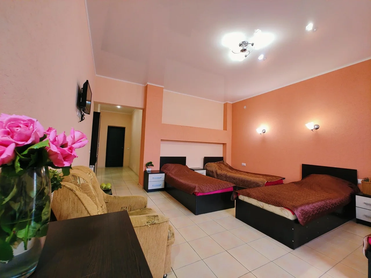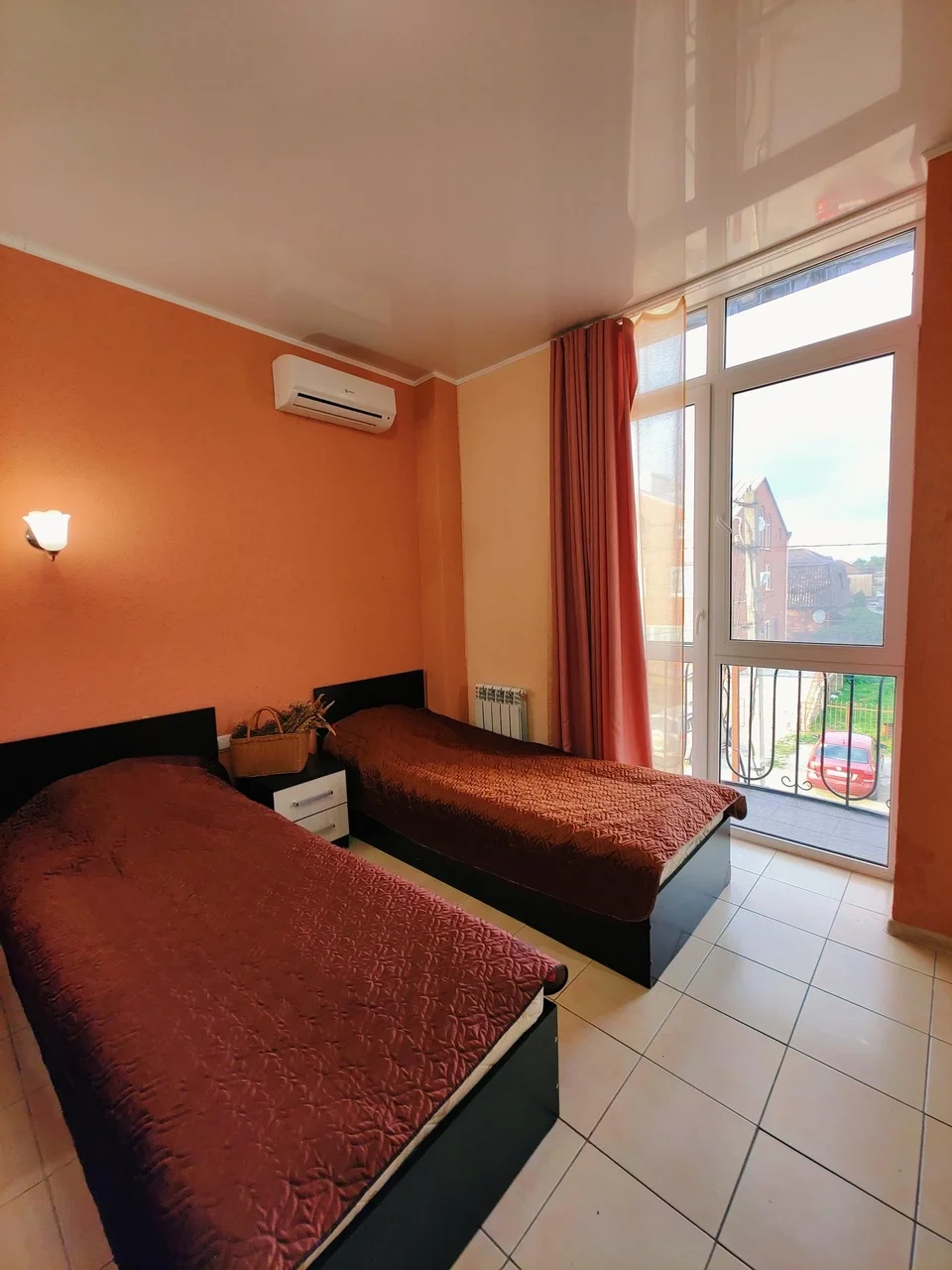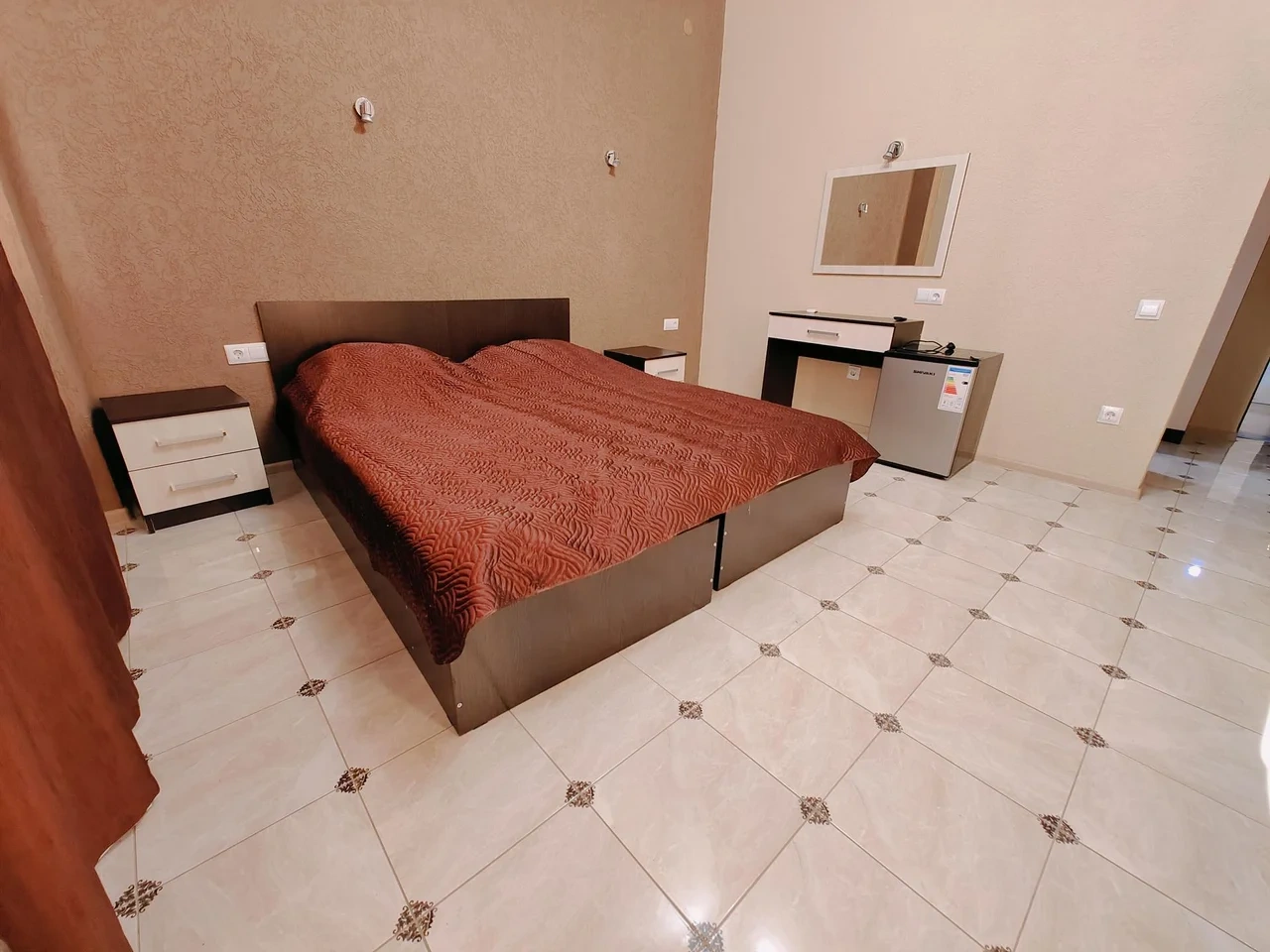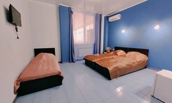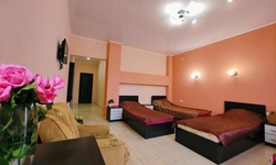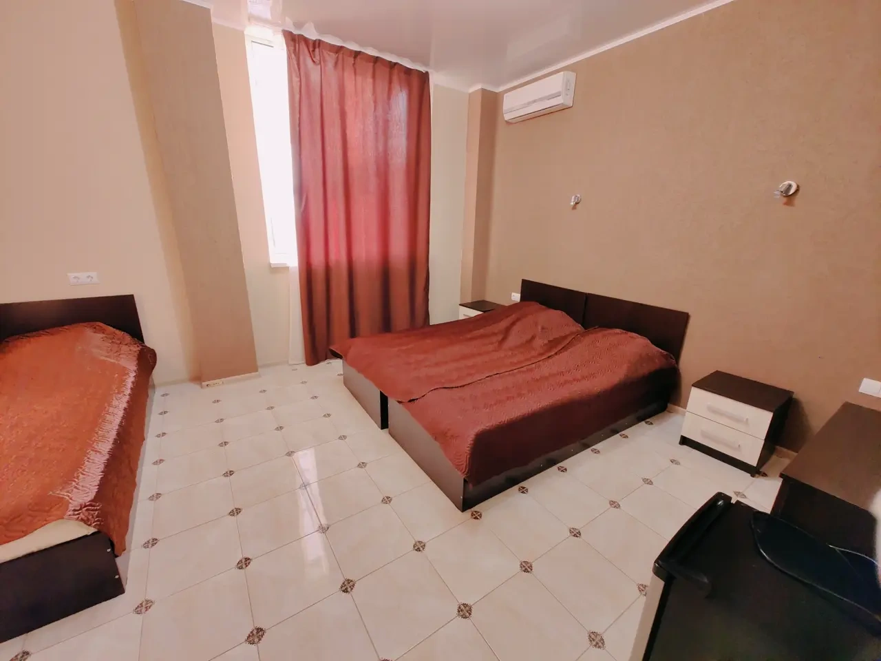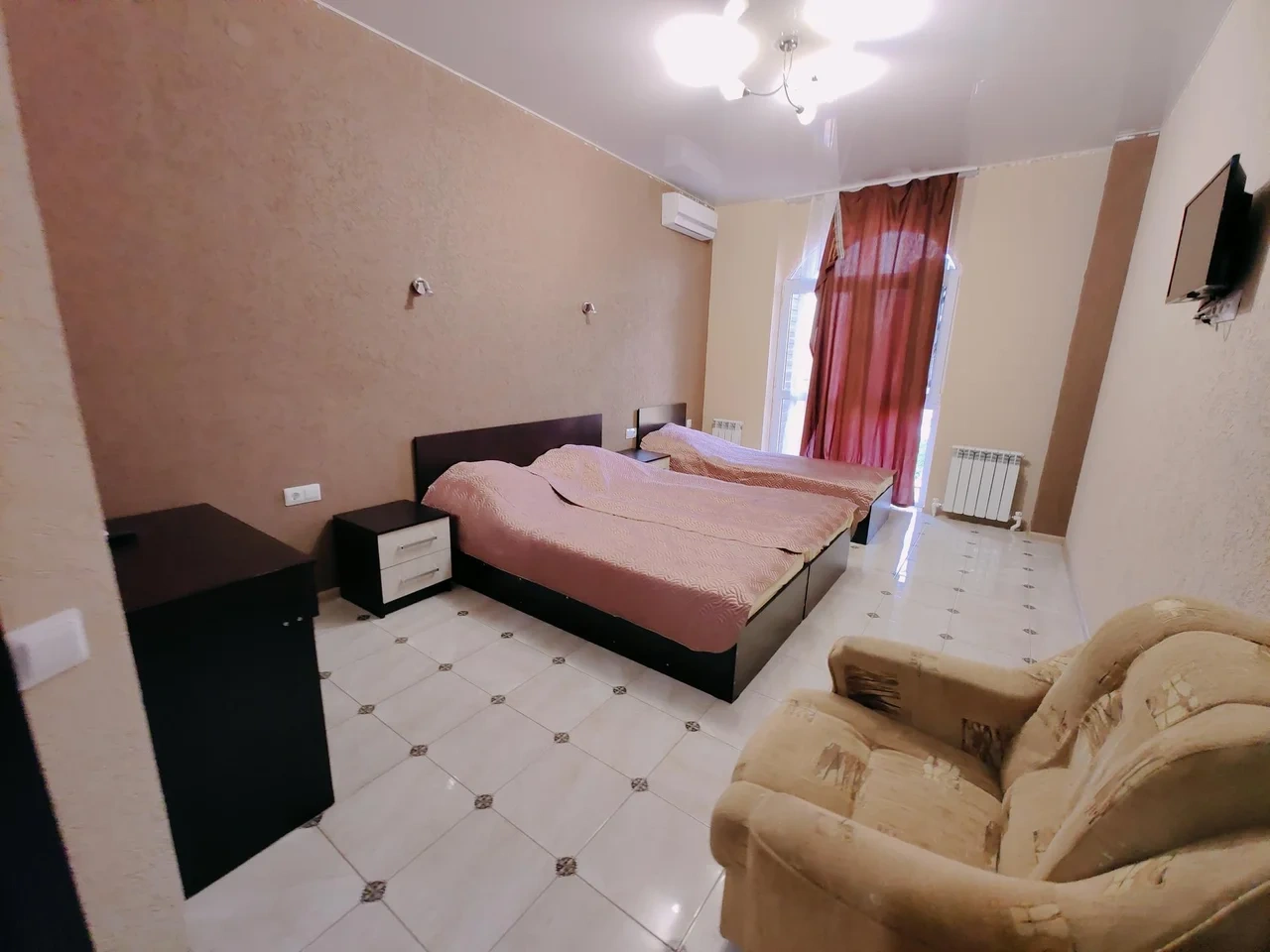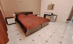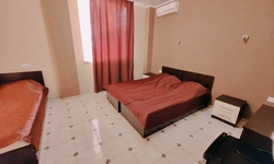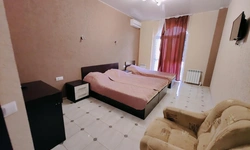 Просторные 2-комнатные номера с изолированными комнатами каждая из которых имеет свой выход на балкон. Номер оснащен 4-мя односпальными кроватями, прикроватными тумбами, журнальным столиком, платяным шкафом, мини-холодильником, телевизором и кондиционером. Ванная комната (душ, туалет, раковина).