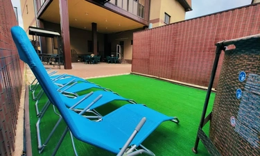 На территории гостевого дома Lion Castle есть все необходимое для приятного отдыха: оборудованная зона барбекю со всем необходимым для приготовления вкусных блюд на огне; каркасный бассейн с шезлонгами для комфортного отдыха на открытом воздухе; веранда с летней мебелью и бесплатная автопарковка для гостей.