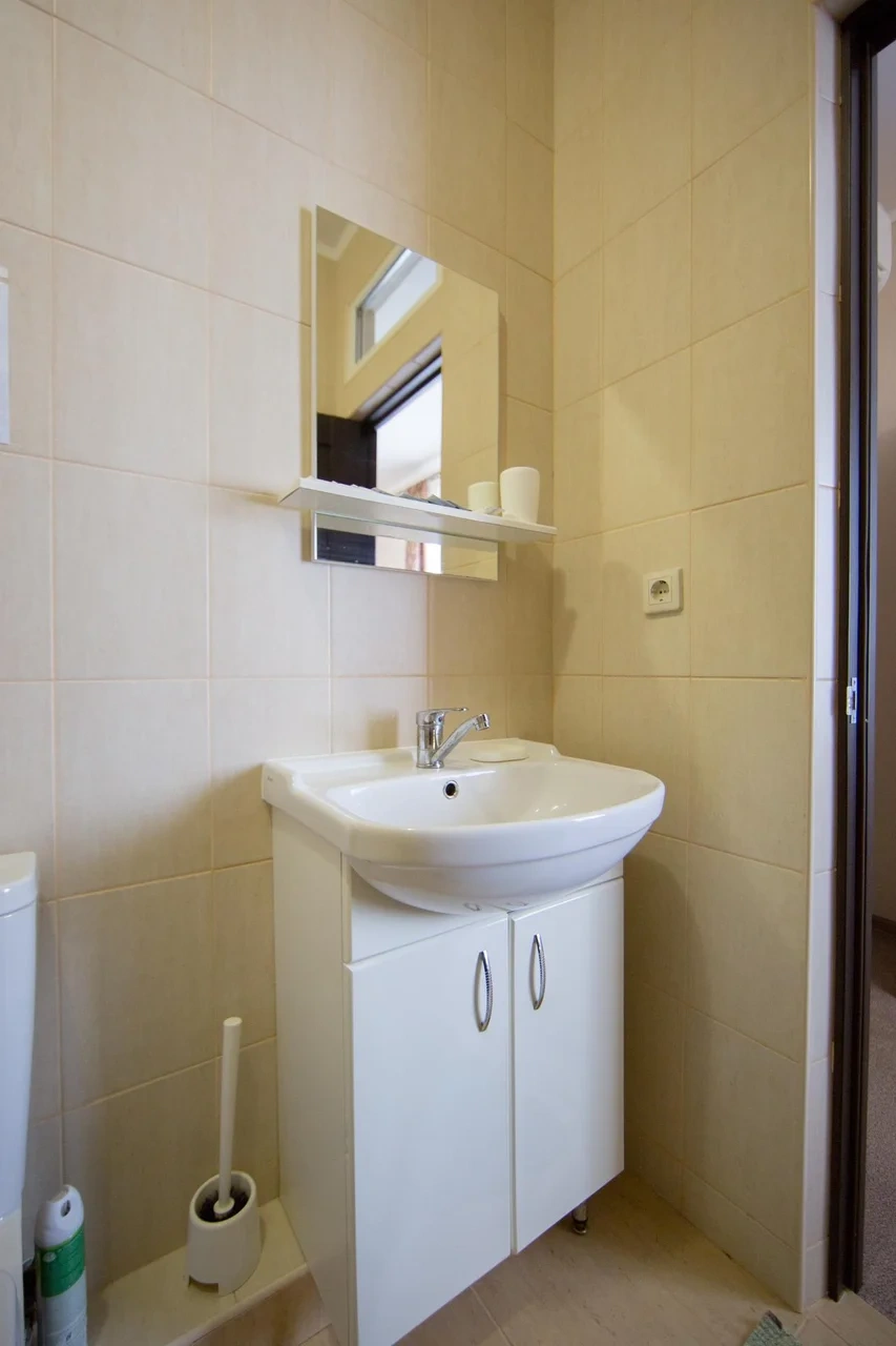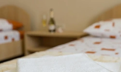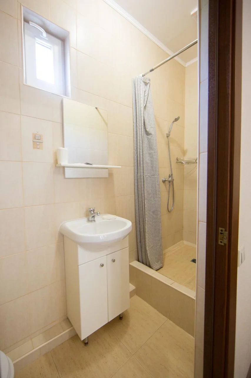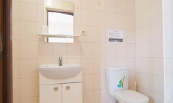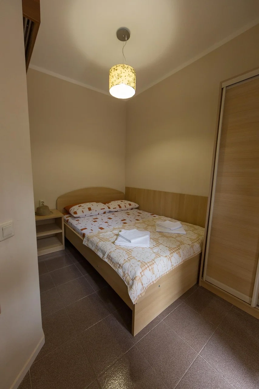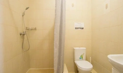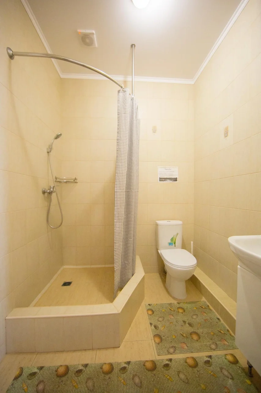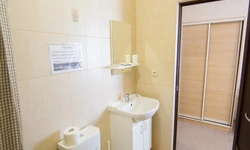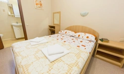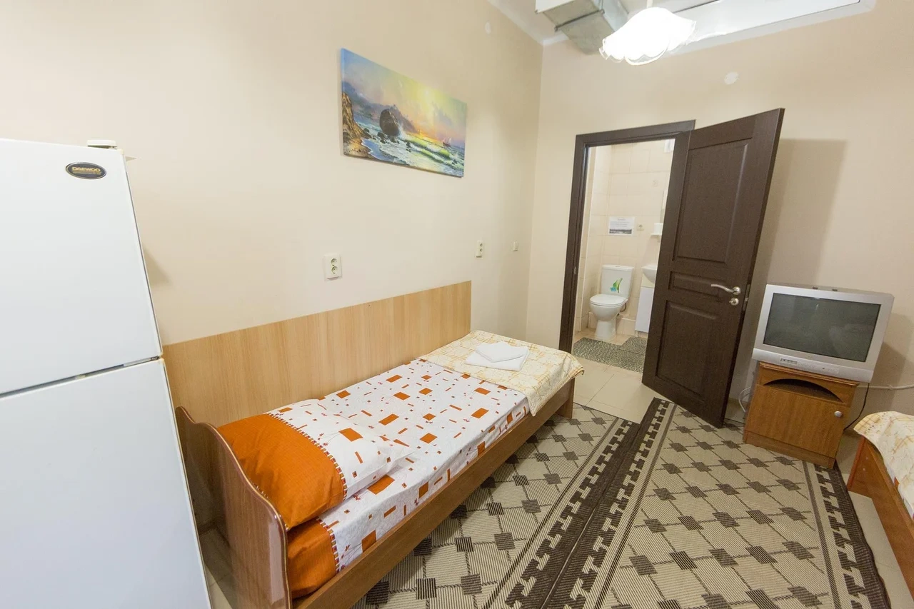 Трехместный номер с удобствами, с выходом на большую террасу со столиками. Чисто, белые полотенца. Немного не хватало чайника в номере, но есть общая кухня со множеством чайников. Но это так, придирка. Рядом очень вкусная и недорогая столовая в отеле Мария. Но работает то кафе лишь летом. С удовольствием посетил бы еще.