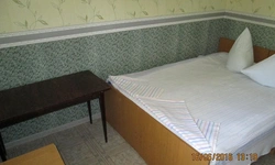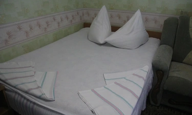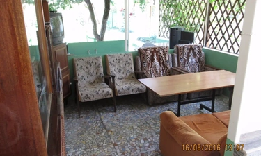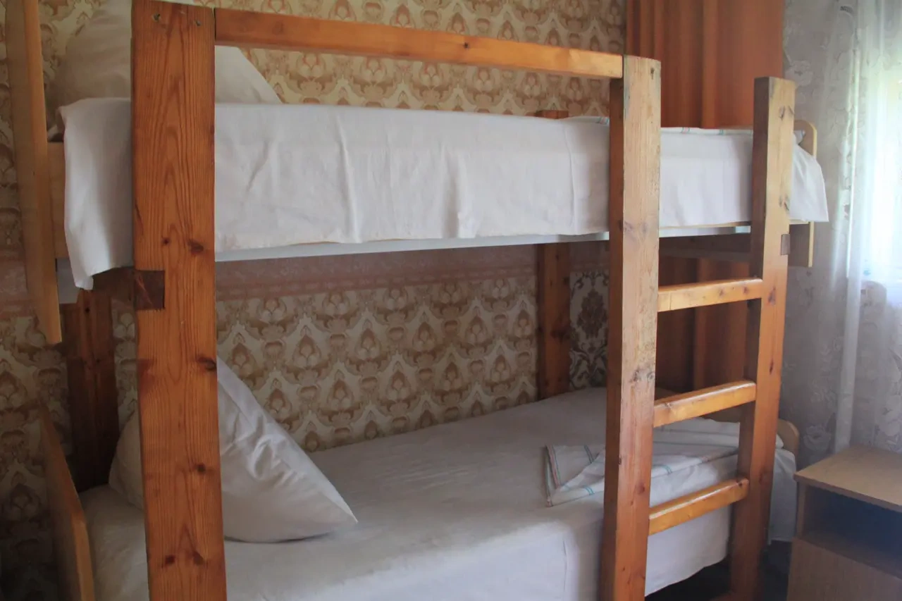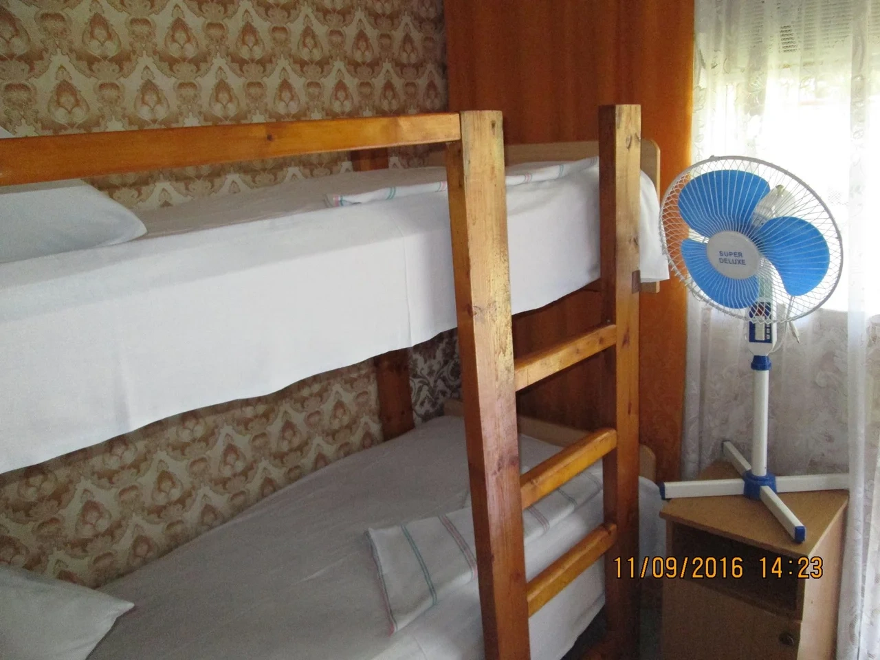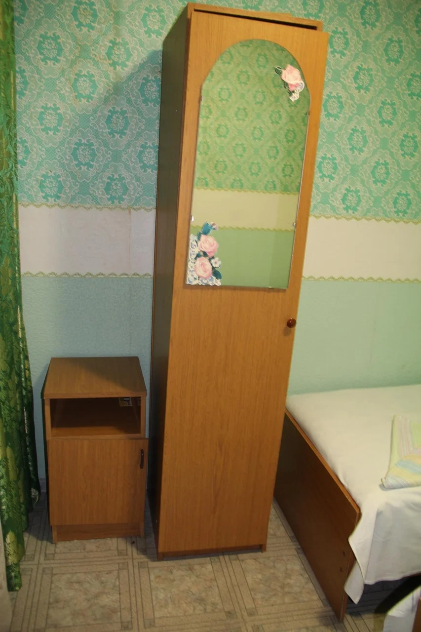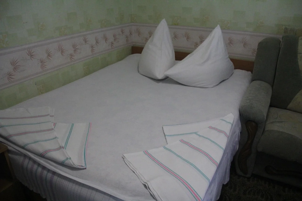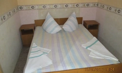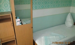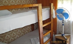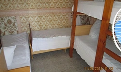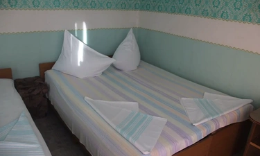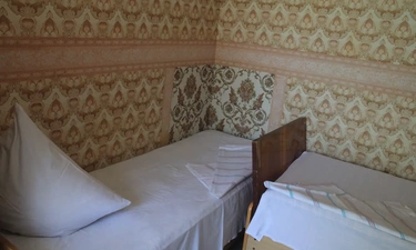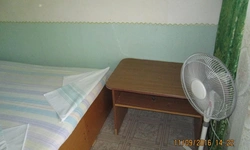 В номере: 2 односпальные кровати, шкаф, тумбочка, вентилятор. Санузел (туалет и душ) во дворе. Горячая и холодная вода - постоянно. Полотенца не выдаются.