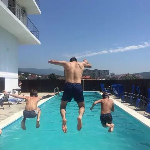 С балкона открывается прекрасный вид на горы и море. На территории отеля есть кафе, где можно позавтракать, пообедать и поужинать. Завтраки не входят в стоимость проживания.