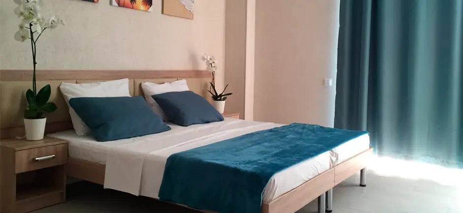 Скидка 20% действует с 25 июня по 31 июля и предоставляется на все номера. Минимальный срок проживания от 3 ночей.