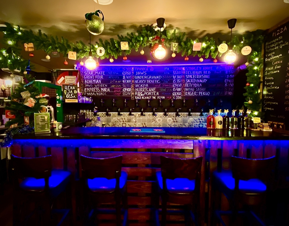 Небольшой уютный бар с большим ассортиментом крафтового пива, авторскими настойками, вкусными закусками и хорошей музыкальной атмосферой.