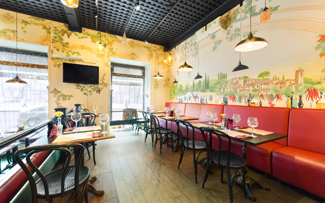 Интерьер заведения представляет собой роспись стен великолепными видами тосканских пейзажей. Атмосфера зала идеально подходит для любого случая: делового обеда, ужина или другого особого момента вашей жизни. Здесь вы проведете приятный и незабываемый вечер.